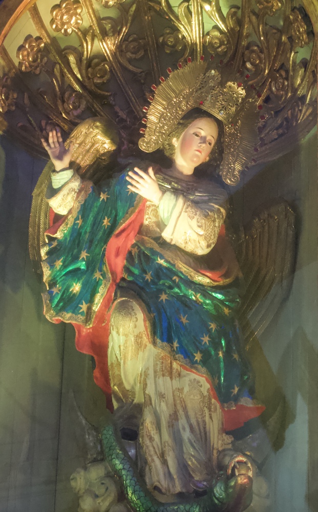 During our walk through the old city we visited the gold-encrusted interior of the Jesuit La Compania de Jesus church that combines Baroque and Mudejar design elements. The church is now a museum except for Sunday mass. Huge vases of white flowers were being arranged on the altar this Saturday afternoon.