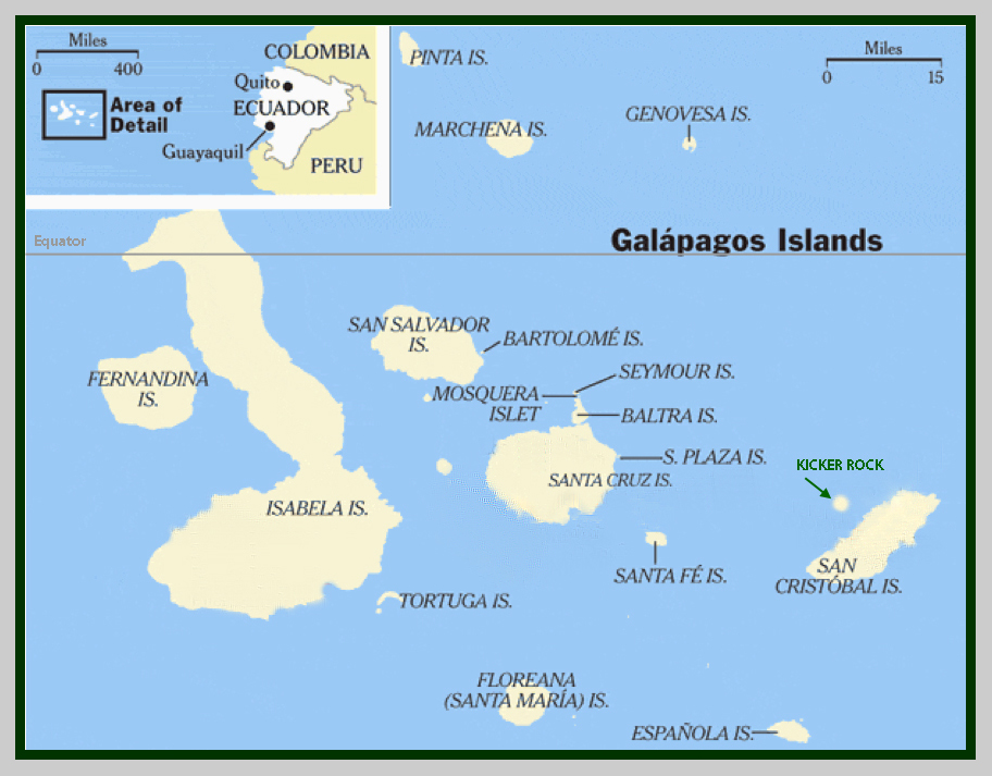 Galapagos Islands Map: Kicker Rock off San Cristobal on Lower Right