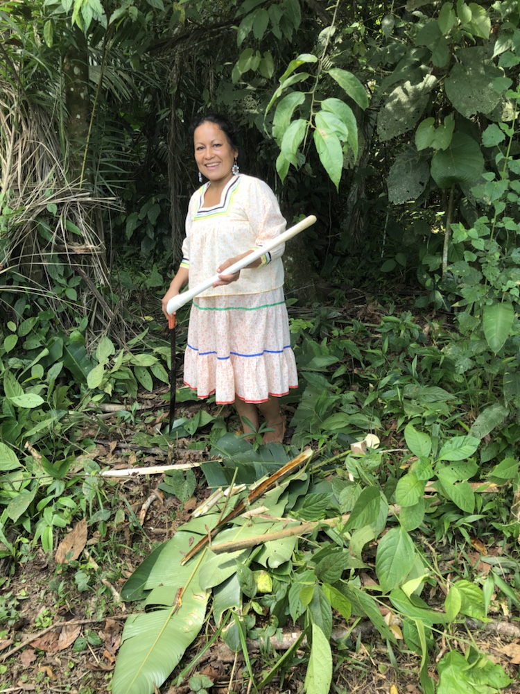 Christina at home visit showing us harvesting from the forest
